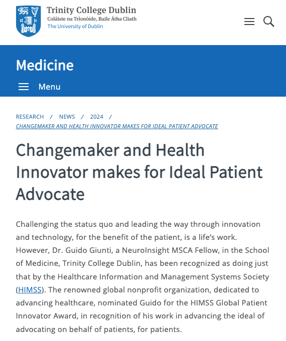 Title: "Changemaker and Health Innovator makes for Ideal Patient Advocate"